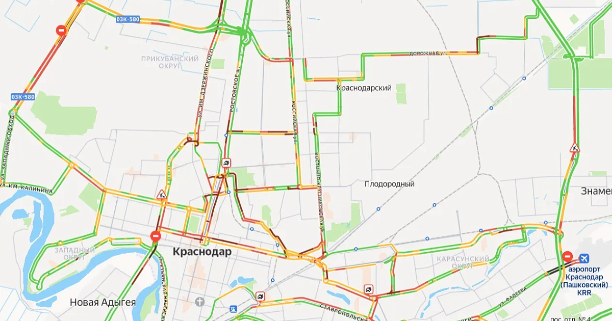 Наиболее сложная дорожная обстановка наблюдается на ключевых транспортных артериях. Заторы зафиксированы на улицах Северной, Тургенева, Красной, Дзержинского, Ставропольской, Колхозной, 40-летия Победы и Садовой, а также на Восточном и Западном обходах. Перегружены и прилегающие к ним улицы.