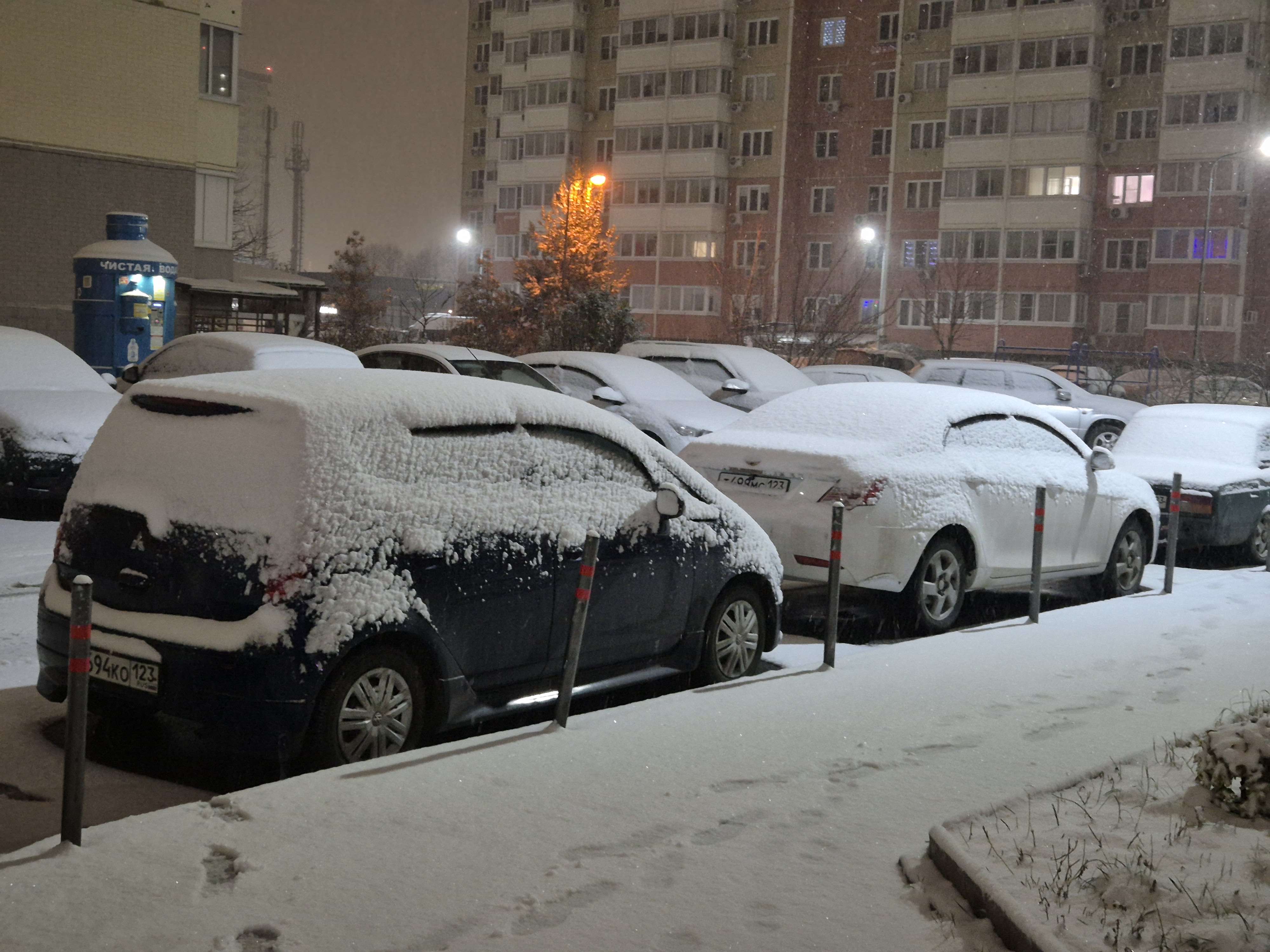 Люди выставили стулья и табуретки на места для авто.