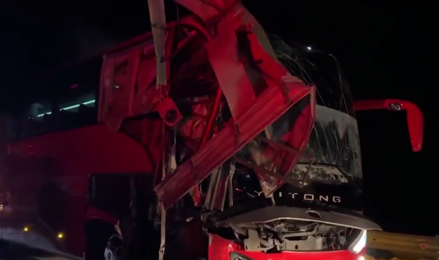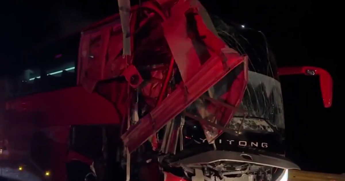 На видеозаписи видны серьёзные повреждения обеих машин: у автобуса разбито лобовое стекло, в корпусе застряла часть прицепа грузовика, а в кабине последнего стекла полностью выбиты.