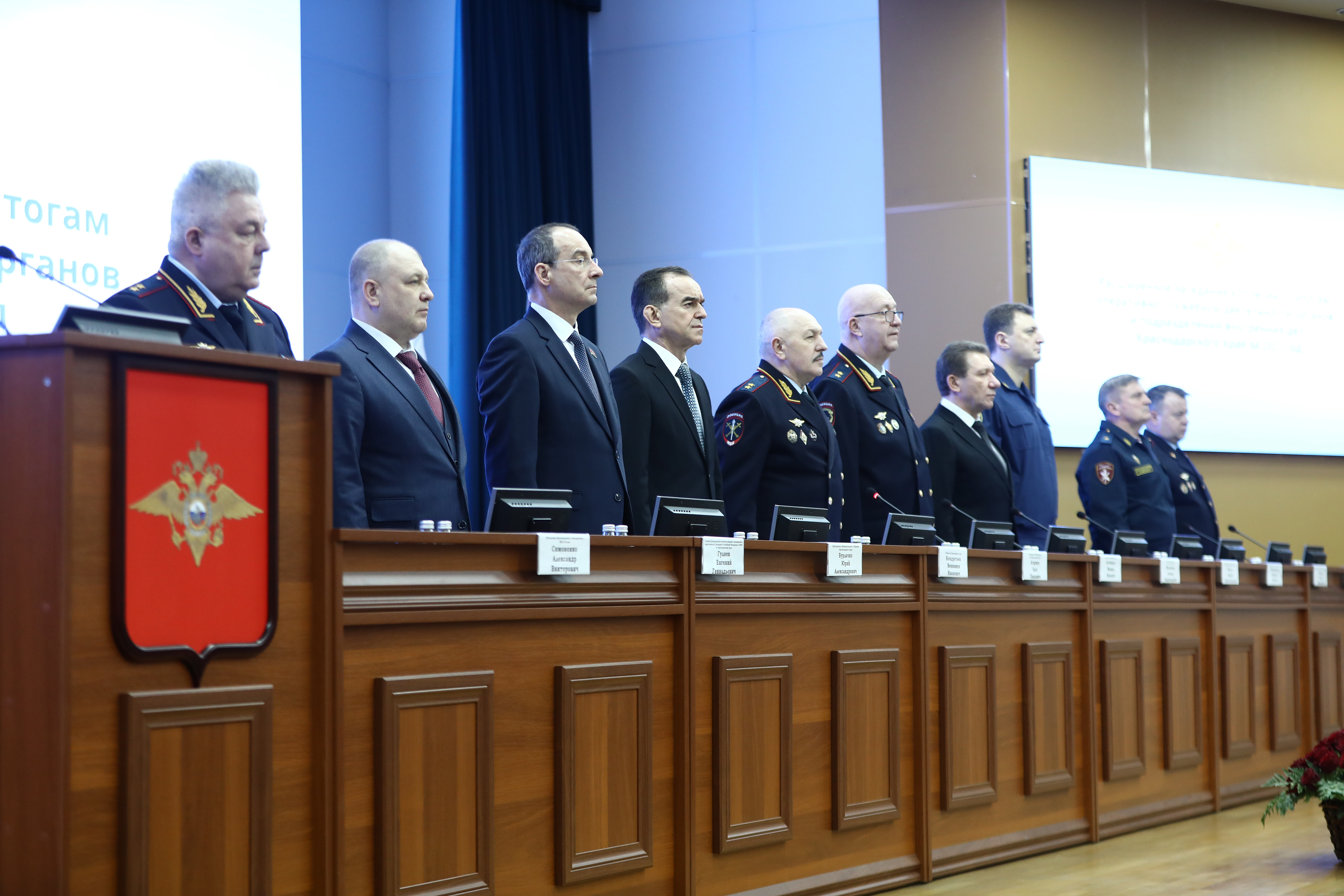 Губернатор Краснодарского края Вениамин Кондратьев принял участие в расширенном заседании коллегии ГУ МВД России по Краснодарскому краю, на котором подвели итоги работы полиции за 2025 год. Заседание провел начальник краевого главка Олег Агарков.