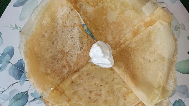 Перечисленных продуктов хватит примерно на 20 блинчиков, если сковорода диаметром 22-25 см. Больше теста на сковороде – более упругий блин, в такой проще что-нибудь завернуть. Тонкие и хрупкие вкусны сами по себе, по желанию их можно прослоить начинкой, как коржи.