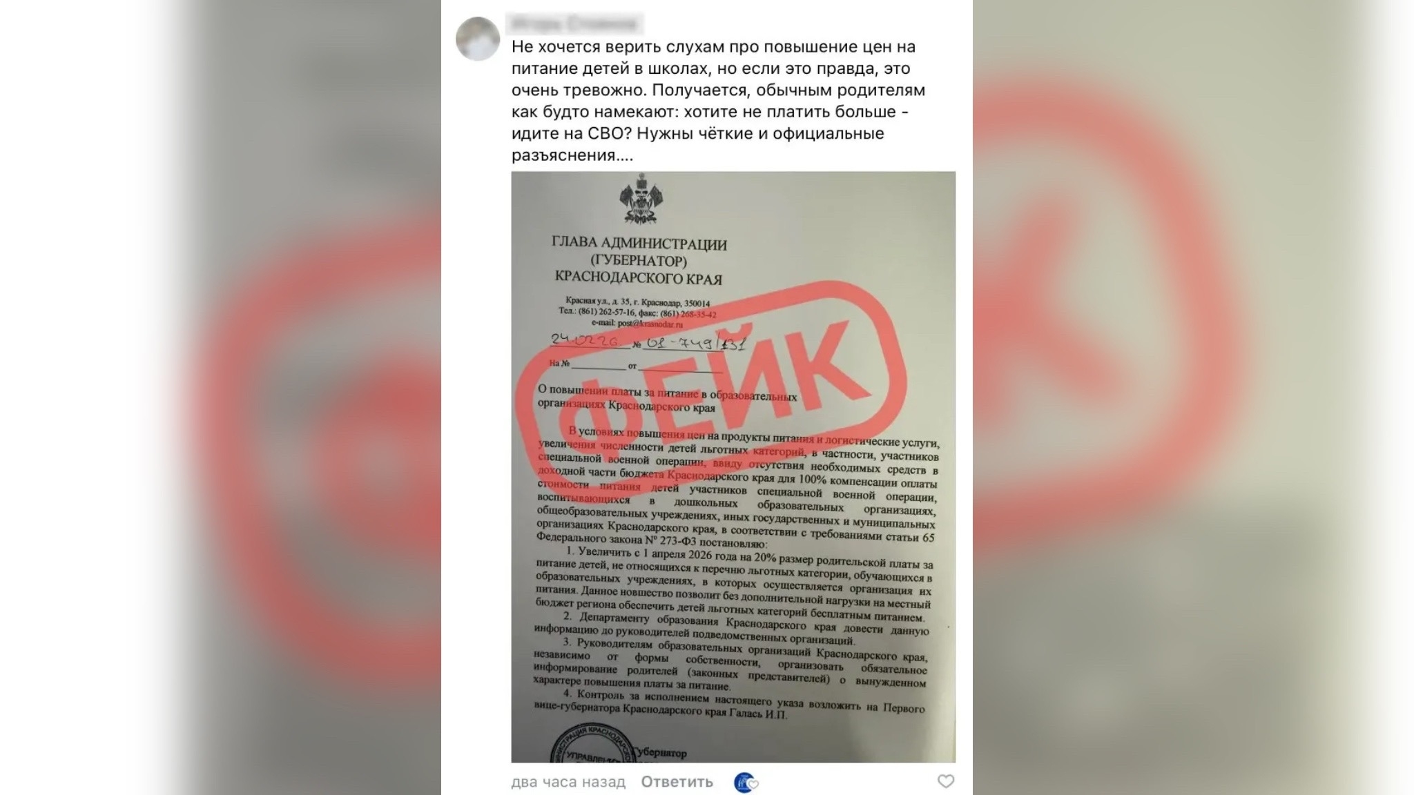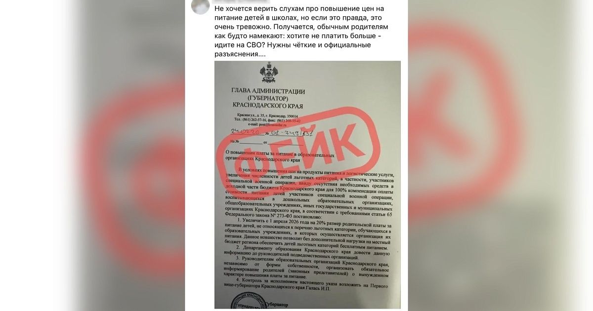 В соцсетях появилась информация о повышении платы за школьное питание, прикрепляют фото якобы подписанного постановления. На самом деле, это фейк!