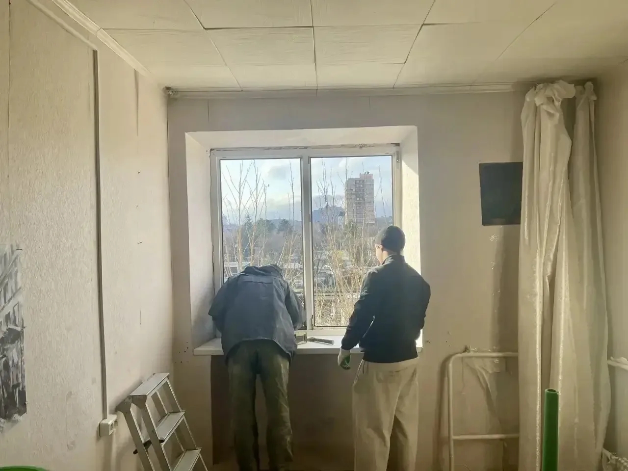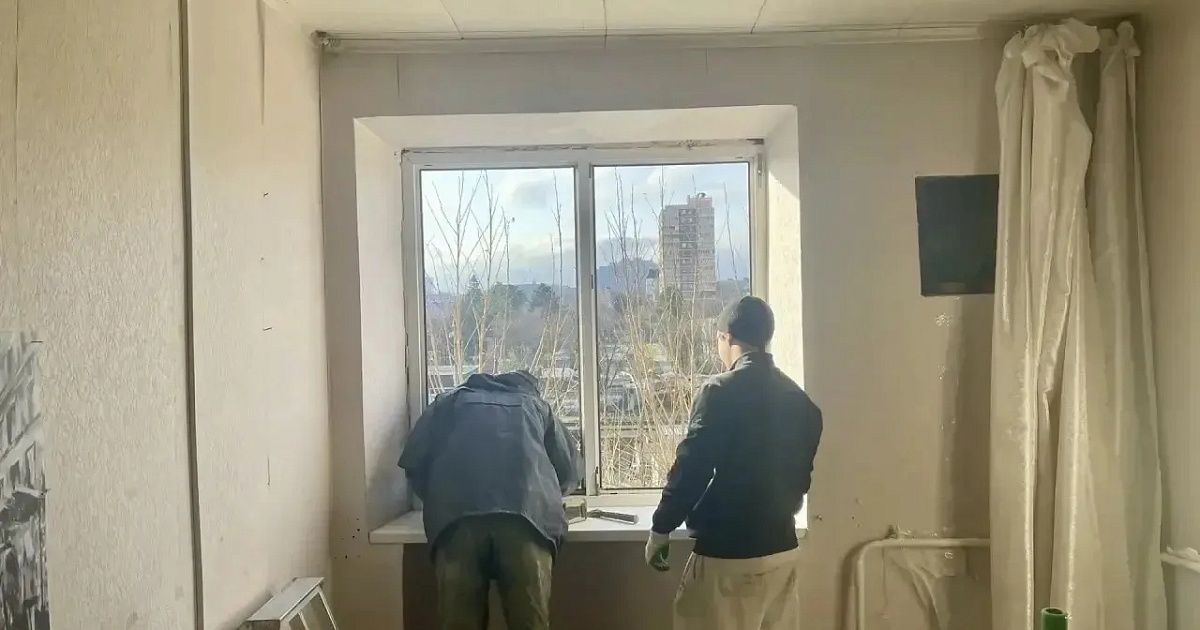 Работы проводят в домах № 11А и 11Б на улице Новороссийская. Атака вражеских БПЛА произошла 20 февраля. Осколки сбитого беспилотника повредили окна, газовую трубу.