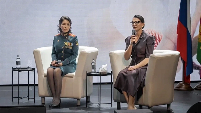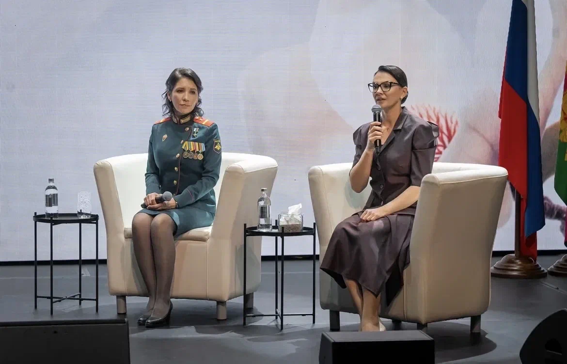 После церемонии открытия состоялась встреча Людмилы Болилой с участницами выставки, волонтёрами СВО и молодёжью Геленджика.