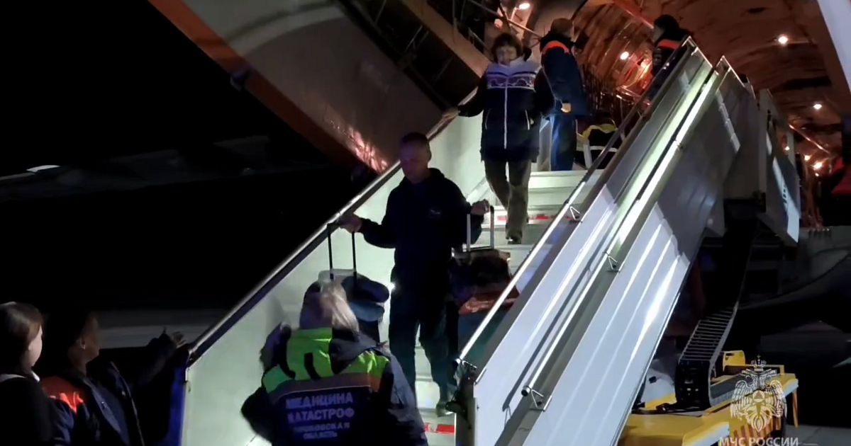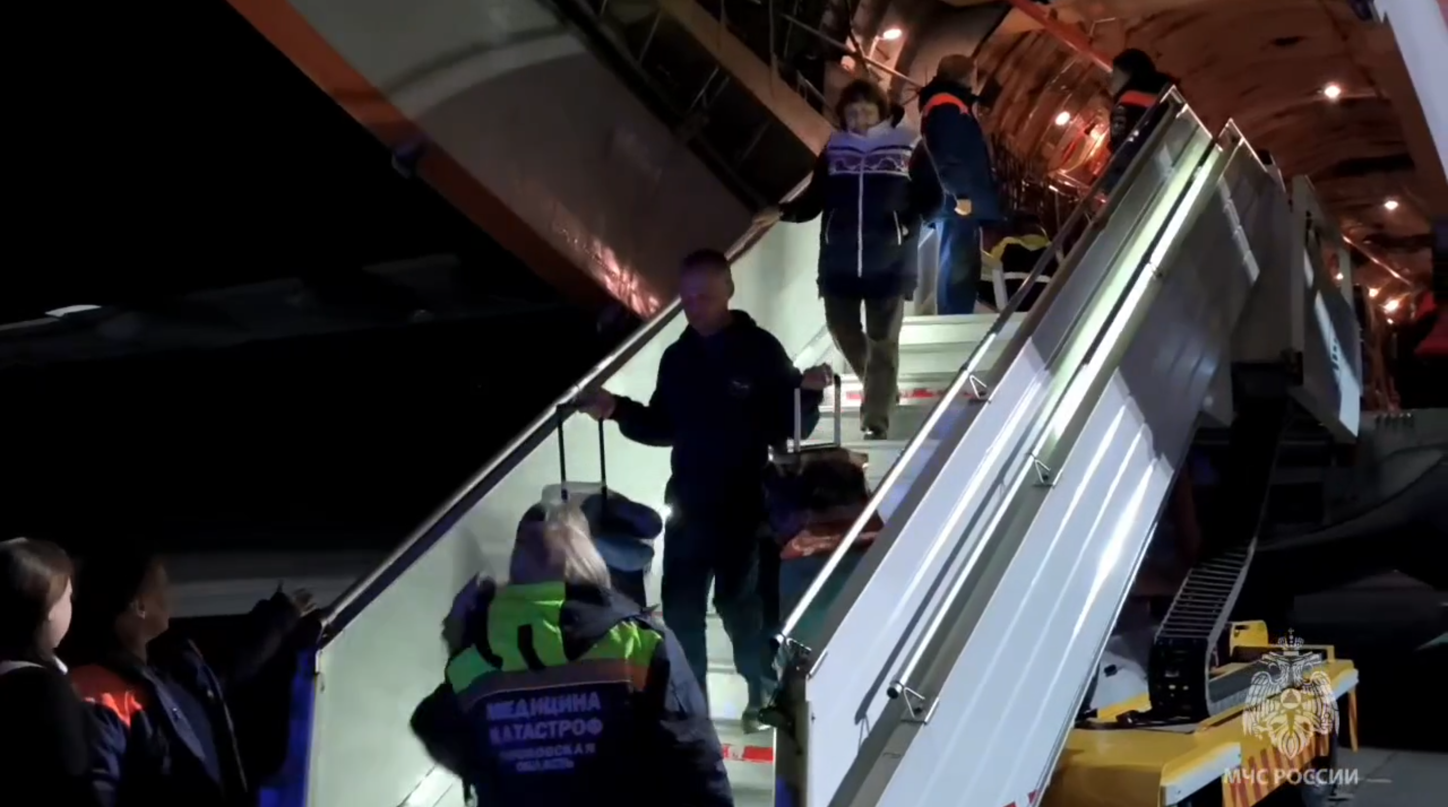 Борт МЧС доставил в Домодедово 73 человека, включая 33 детей.