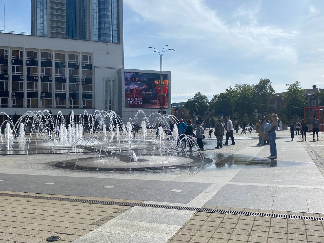 В администрации Краснодара напомнили, что любоваться фонтанами можно, но купаться в них строго запрещено: вода техническая, и это может навредить здоровью.