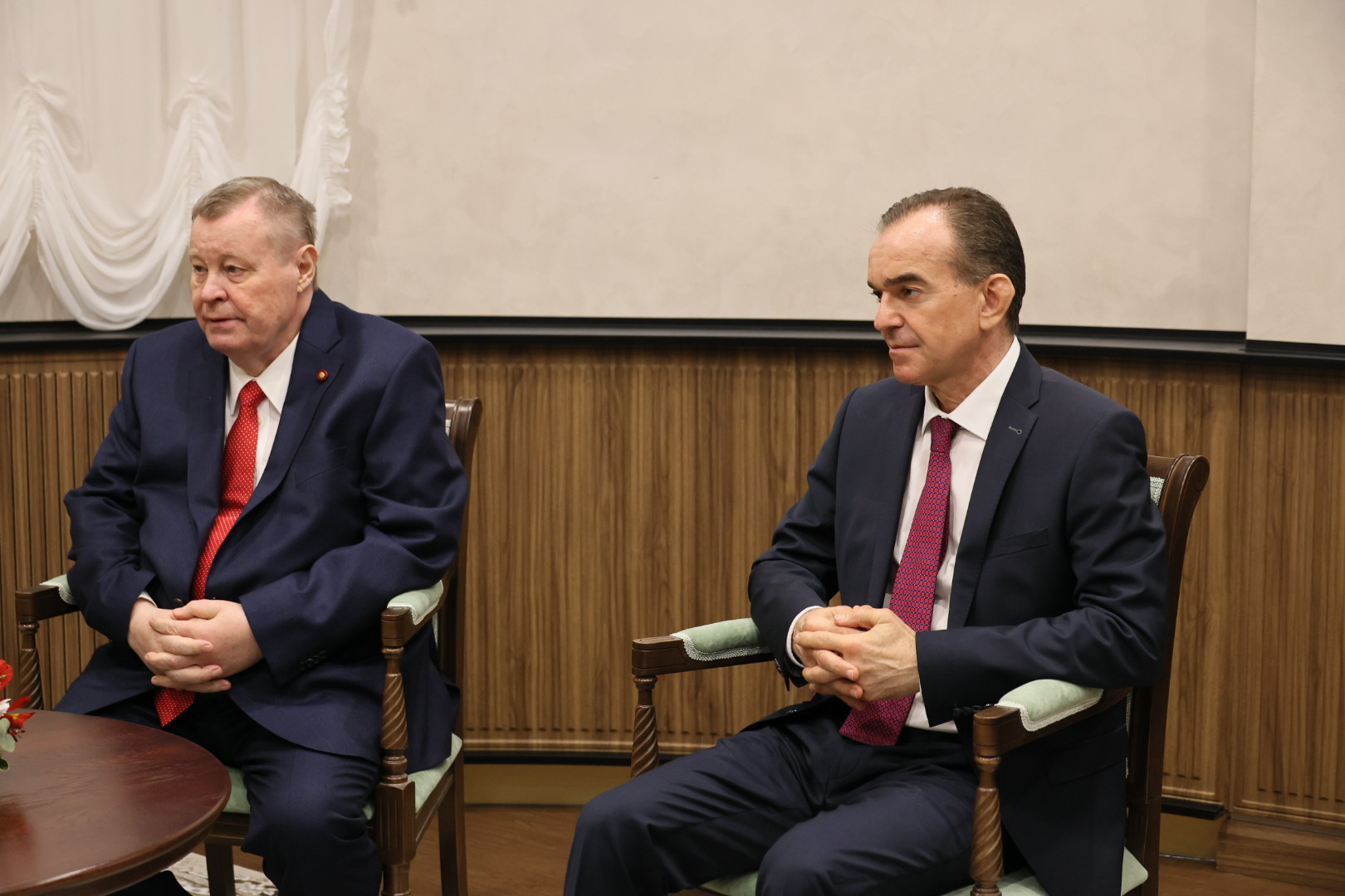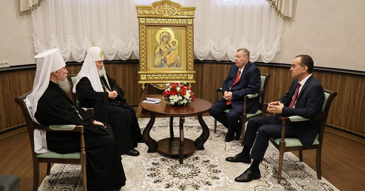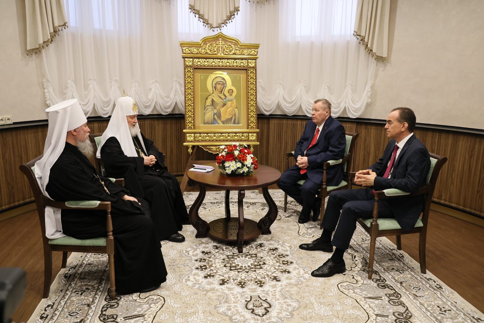 Патриарх Кирилл и губернатор Краснодарского края Вениамин Кондратьев обсудили вопросы сохранения православных традиций на Кубани. Во встрече также участвовали полпред президента в ЮФО Владимир Устинов и митрополит Екатеринодарский и Кубанский Василий.