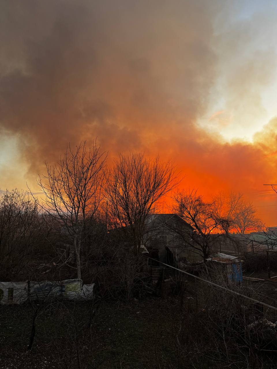 Ранее телеканал «Краснодар» писал о том, что местные жители публикуют кадры оранжевого зарева в соцсетях. По словам станичников, огонь быстро распространяется, все затянуто едким черным дымом.
