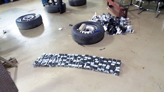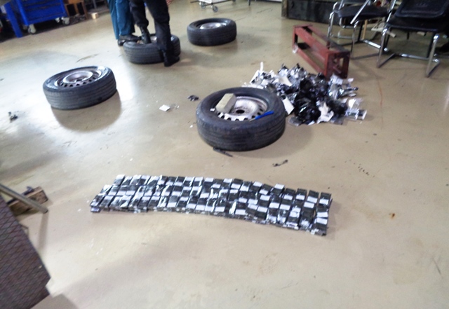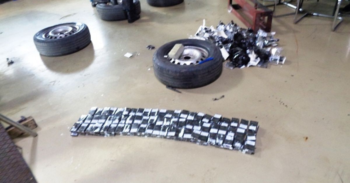 Подозрения у инспекторов вызвало нервное поведение водителя, а также неестественный вид колес. Машину отправили на детальный осмотр с использованием мобильного интроскопа, который показал возможное наличие посторонних предметов.