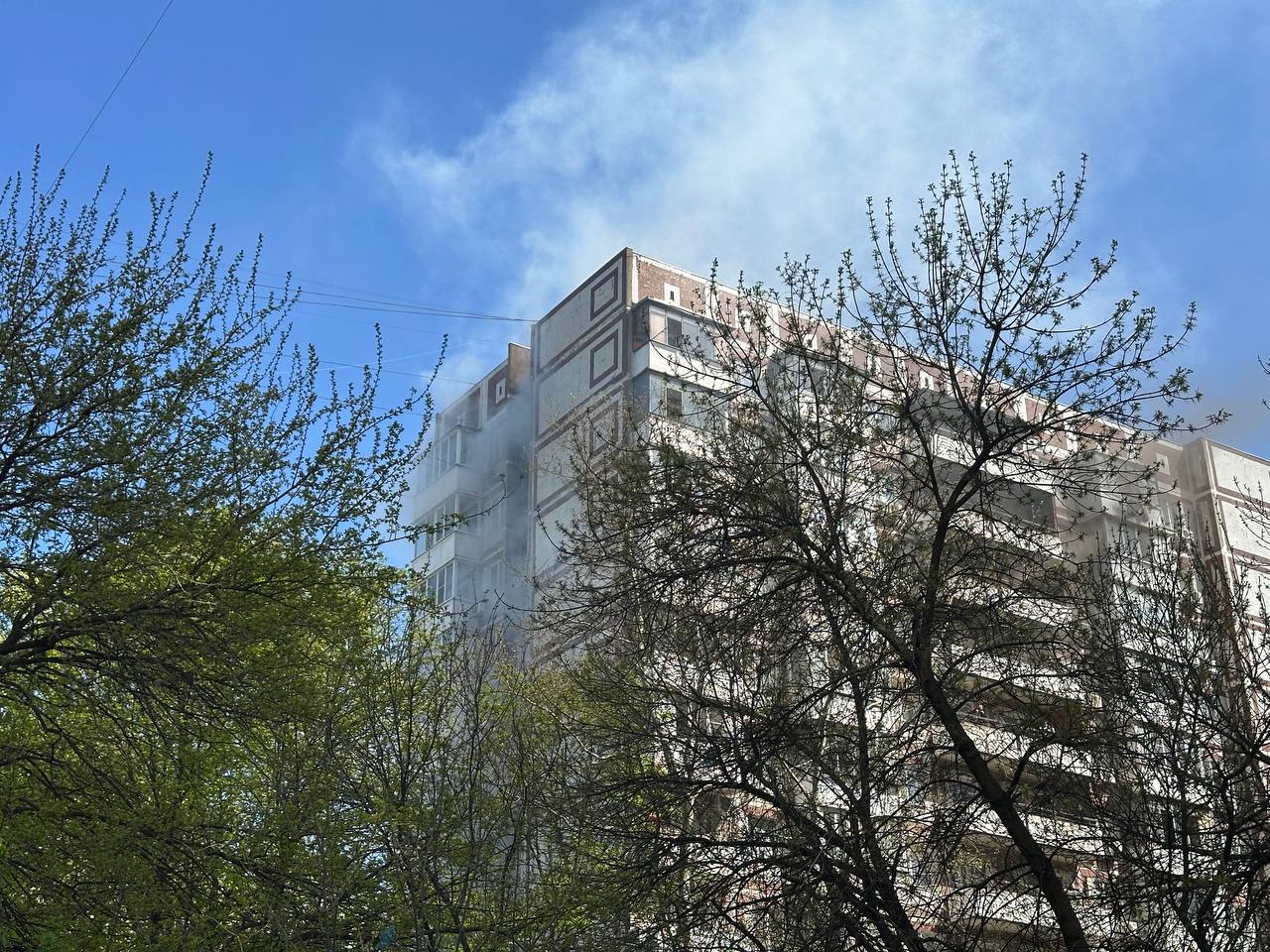 На кадрах видно, что столб чёрного дыма валит из окон квартиры по адресу улица 40-летия Победы 146/9. Во двор уже заехала машина МЧС. На балконы соседних квартир выбежали испуганные люди.