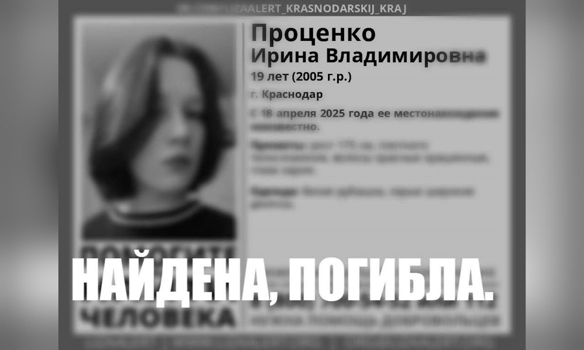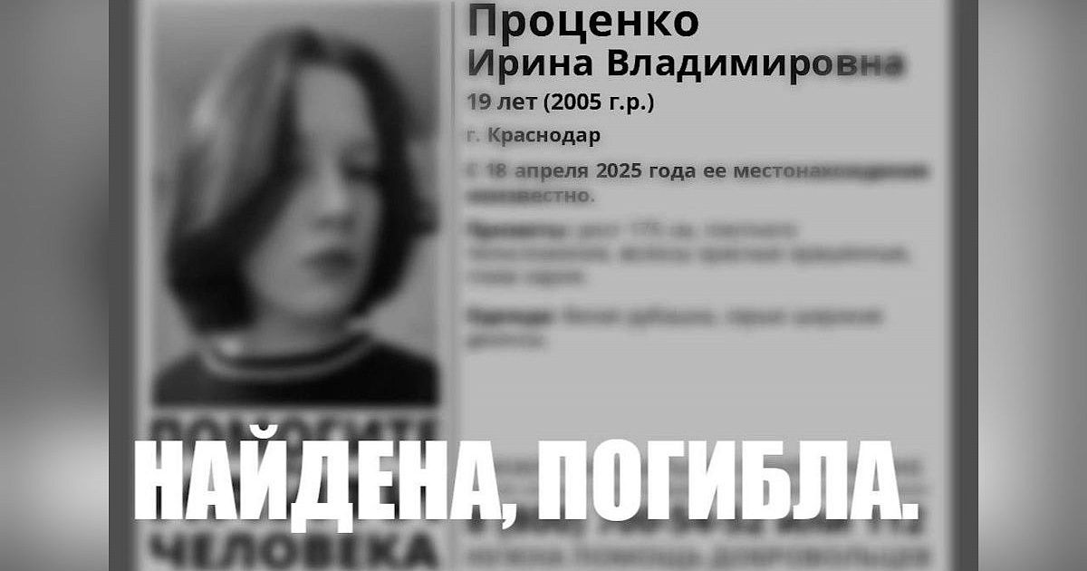 Сообщалось, что о местонахождении 19-летней Ирины Проценко ничего не известно. Горожан, которые что-либо знают о том, где находится студентка, просили сообщить по горячим телефонам поискового отряда.
