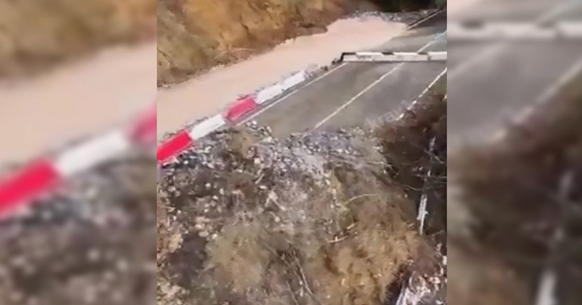 Очевидцы сняли с высоты масштабный оползень в Сочи. Десятки тонн грунта сошли вниз и снесли дорогу. Кадры прислали в Telegram-канал «Краснодар и Краснодарский край».