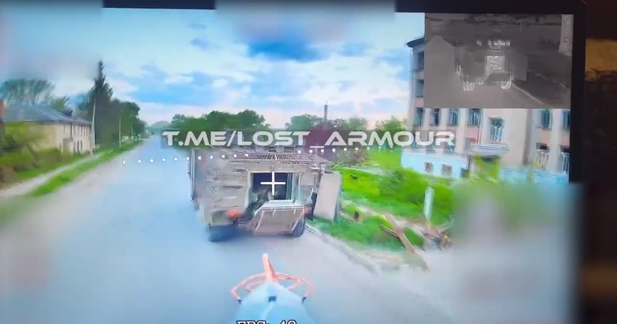 На кадрах, опубликованных Telegram-каналом LOSTARMOUR, зафиксирован момент атаки российского FPV-дрона на украинскую бронемашину. Устройство, управляемое по оптоволоконному каналу, под названием «Князь Вандал Новгородский», нанес удар по десантному отсеку, дождавшись, пока тот откроется.