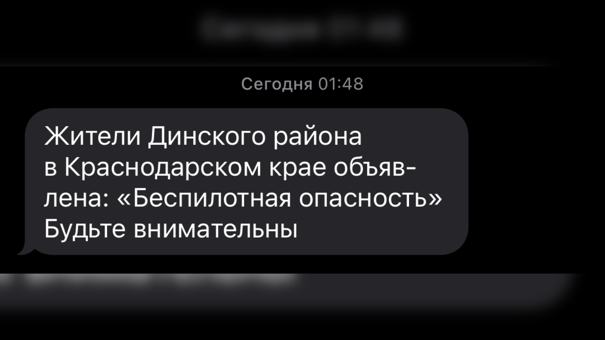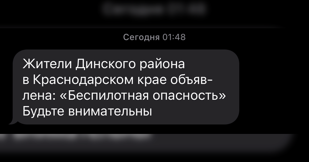 Ночью 2 мая жителям Краснодарского края пришли оповещения об объявлении беспилотной опасности. Сообщения начали приходить около 01:30 сначала в приложении МЧС, а потом от мобильных операторов.