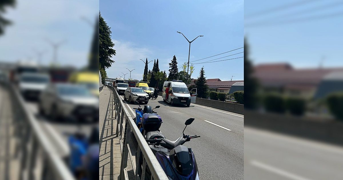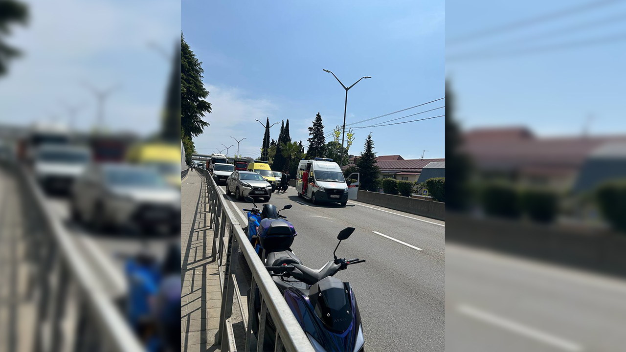 Мотоциклист влетел в легковушку в Адлере. Кадры с места происшествия очевидцы прислали в Telegram-канал «ДТП Сочи».
