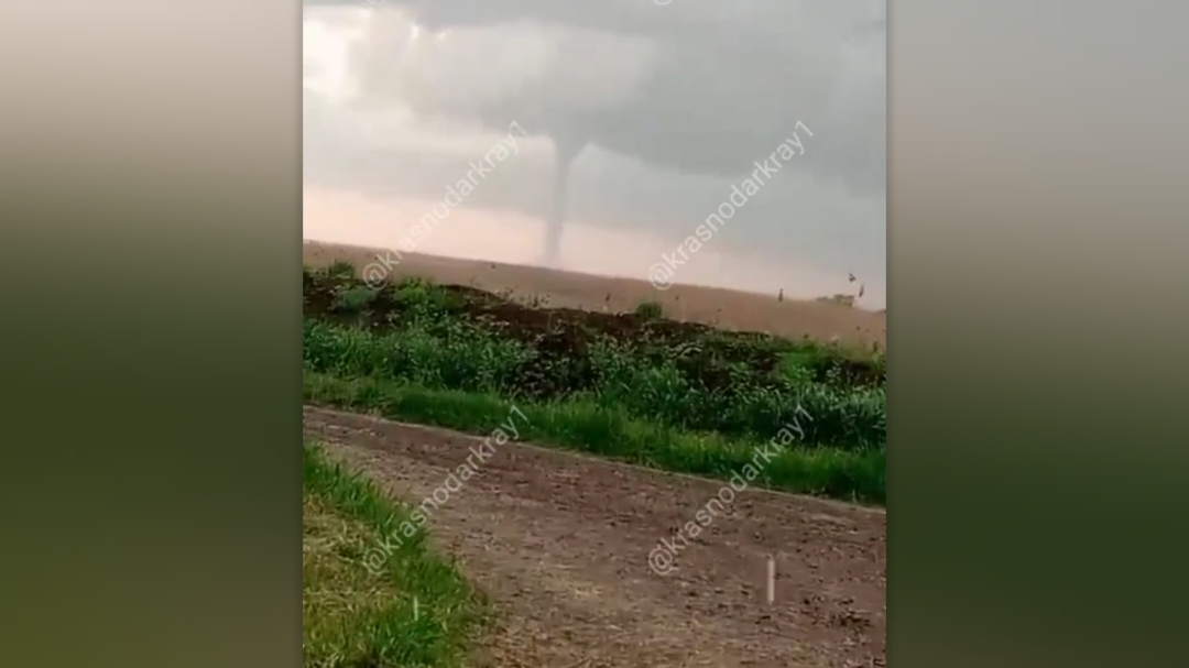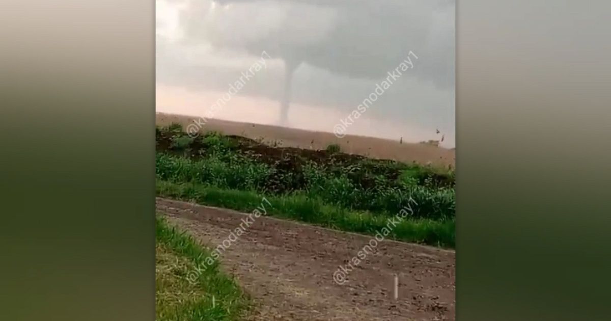 Очевидцы сняли на видео огромный смерч в Приморско-Ахтарском районе. Кадрами поделились с Telegram-каналом «Краснодар и край».