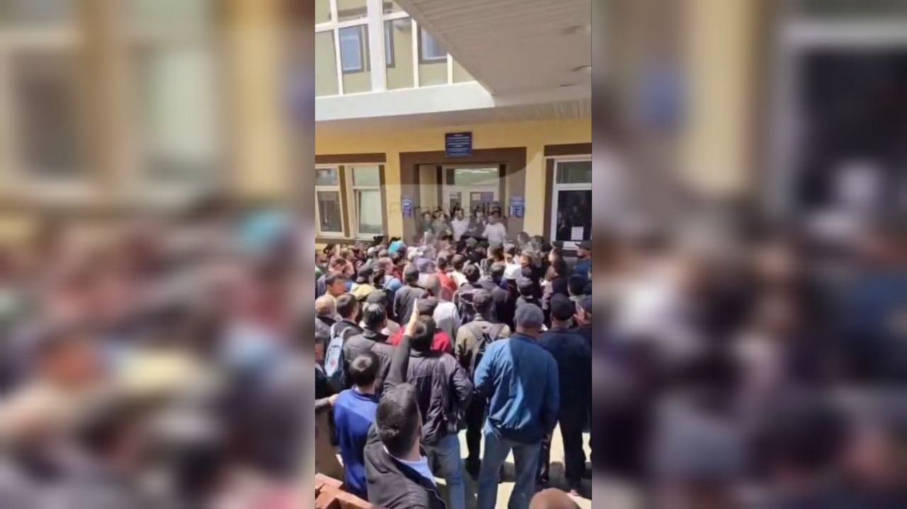 На кадрах видно, как мигранты кричат и пытаются прорваться ко входу в здание МВД.