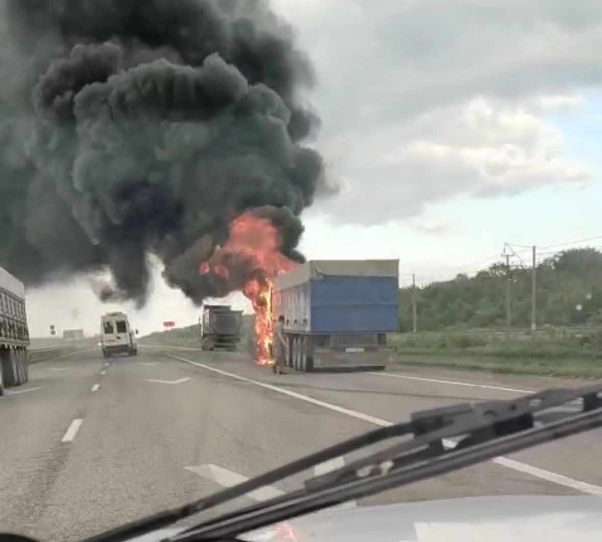 На трассе «Краснодар – Кропоткин» на территории Тбилисского района загорелся грузовик. Большегруз вспыхнул вечером 21 мая. Пожар попал на видео проезжающих автомобилей.