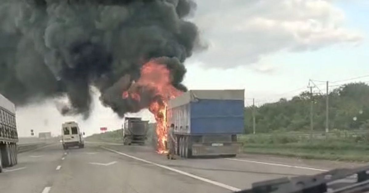 Судя по опубликованным в соцсетях кадрам, загорелась кабина зерновоза, после чего пламя перекинулось на прицеп. Площадь пожара составила пять квадратных метров.