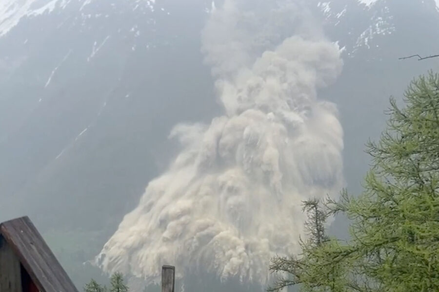 Огромный участок ледника в Швейцарских Альпах откололся и накрыл горную деревню Блаттен. В результате поток льда, камней и грязи погреб под собой значительную часть домов, жители которых эвакуированы из-за риска оползня ещё в начале мая. Об этом наглядно свидетельствуют кадры с БПЛА, переданные швейцарской национальной телерадиокомпанией SRF.