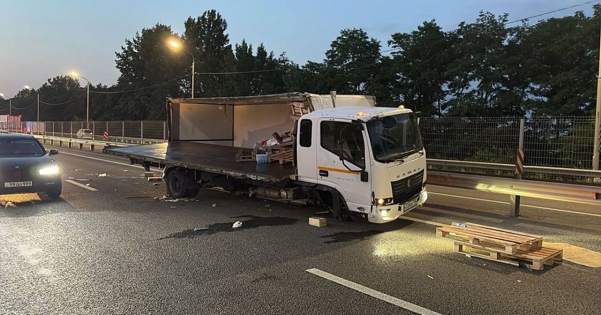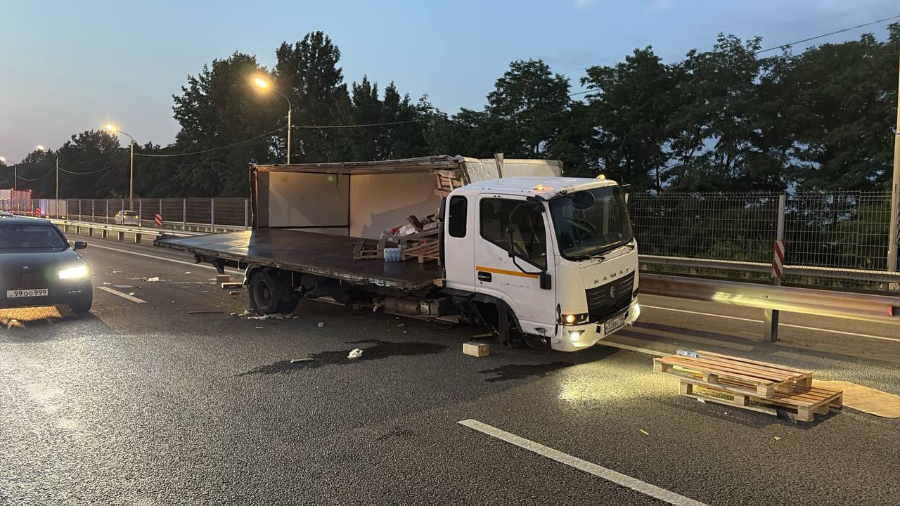 На Восточном обходе на трассе М-4 «Дон» вечером 10 июня произошла авария, которая парализовала движение. Столкнулись «Камаз» и иномарка.