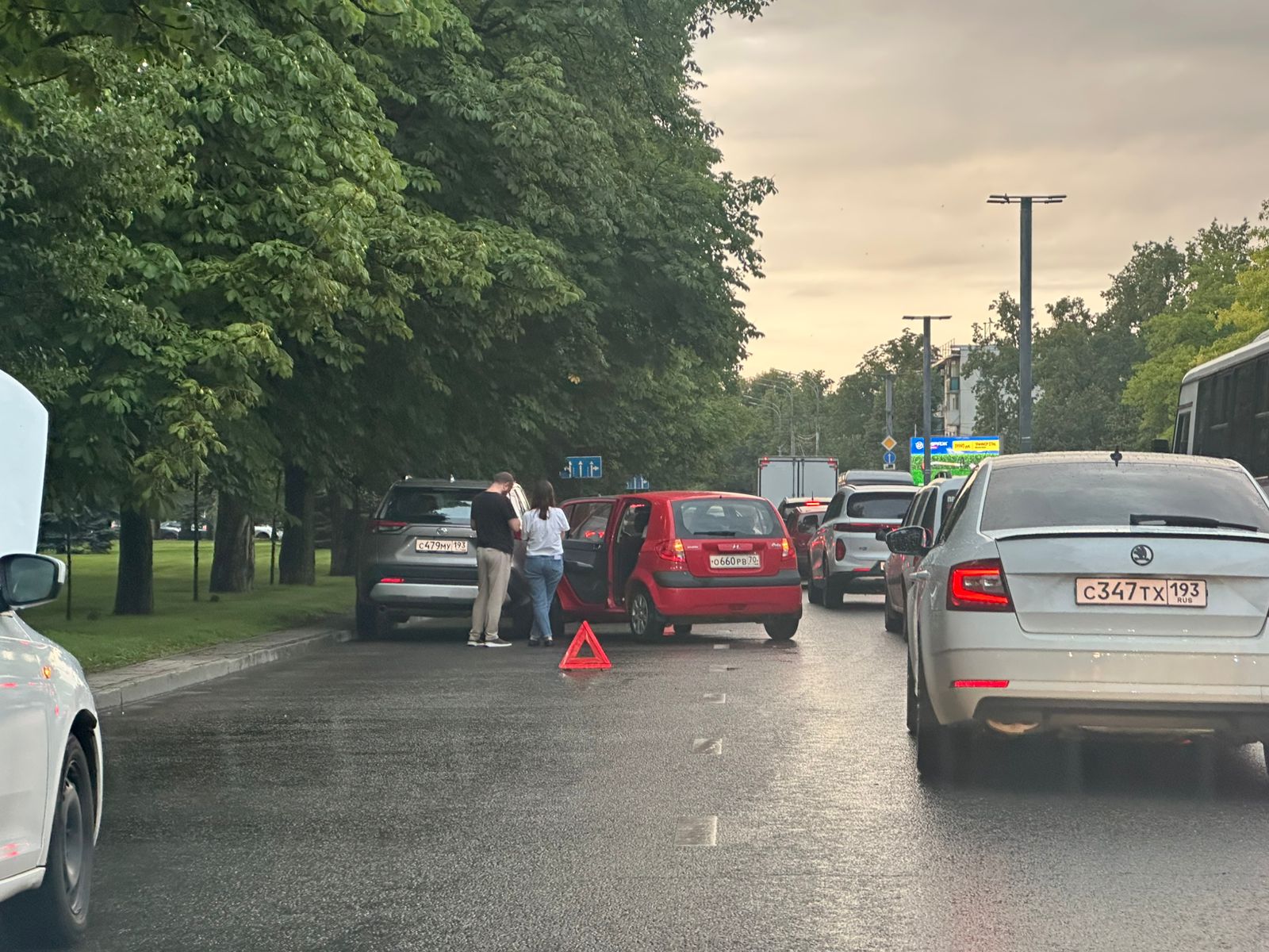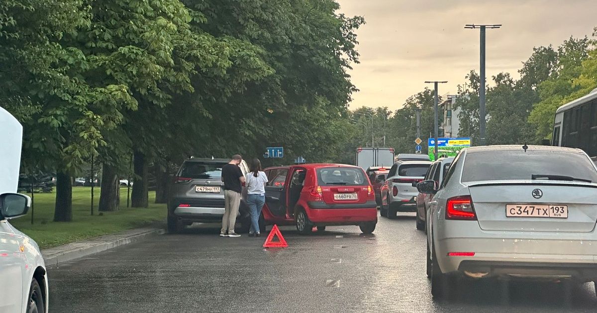 В краевой столице на улице Красной около стадиона «Динамо» произошла авария, видео опубликовал телеграм-канал телеканала «Краснодар».