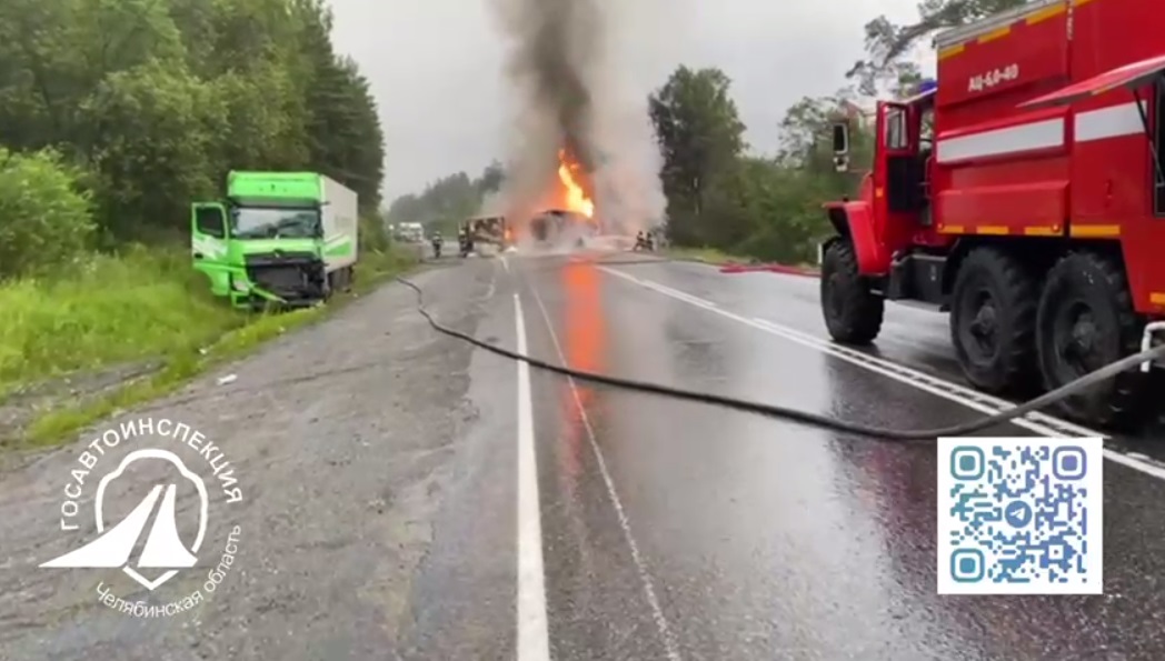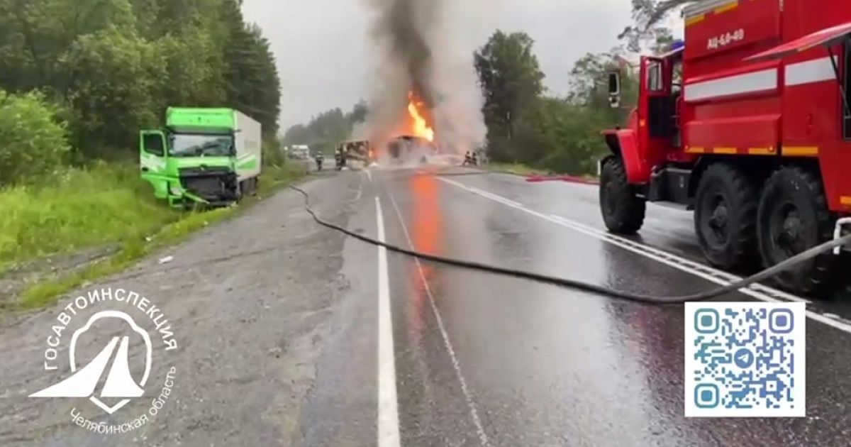 Сообщается о полном перекрытии движения на данном участке дороги. В настоящее время выясняются все обстоятельства произошедшей аварии, сообщили в Госавтоинспекции Челябинской области.