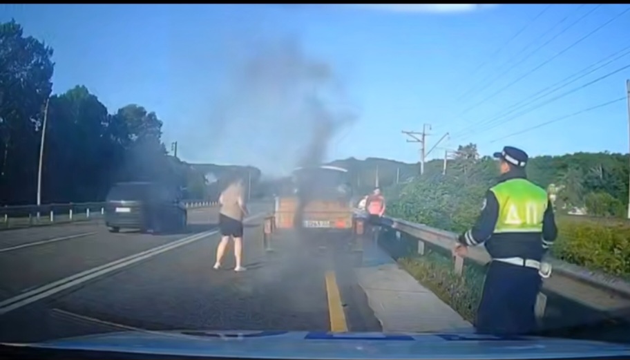 – Утром 22 июня, осуществляя патрулирование на автодороге М-4 «Дон», инспекторы отдельного взвода ДПС из Горячего Ключа, лейтенант полиции Руслан Хеж и майор полиции Анатолий Сарин, заметили дым, идущий от одного из автомобилей в транспортном потоке, – рассказали в пресс-службе ГУ МВД России по Краснодарскому краю.