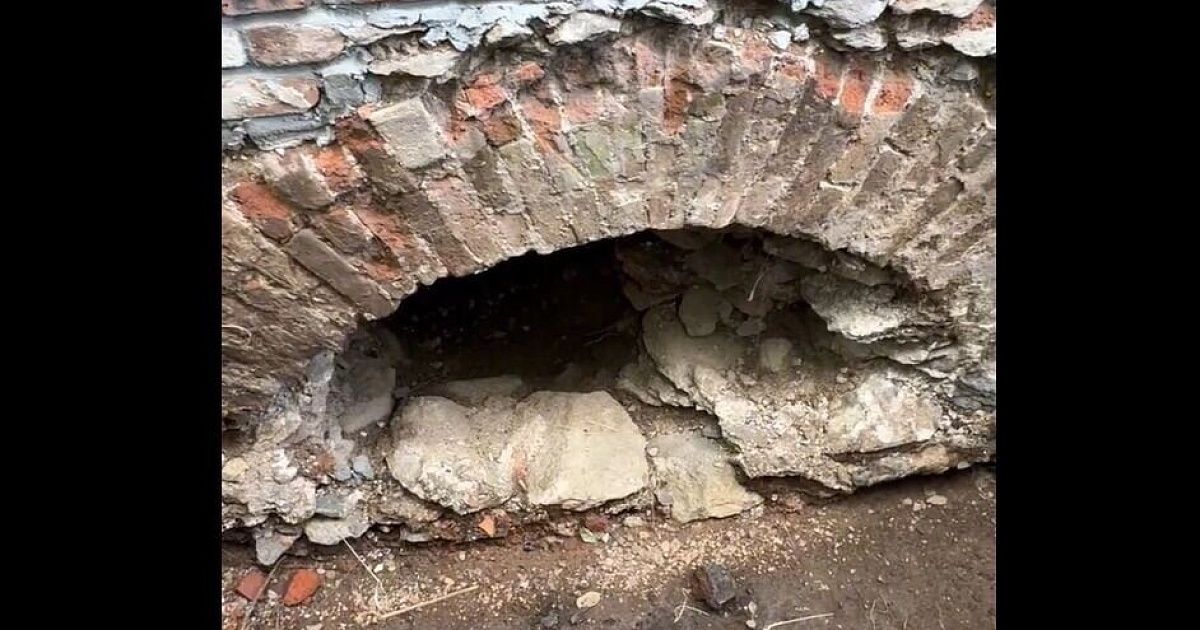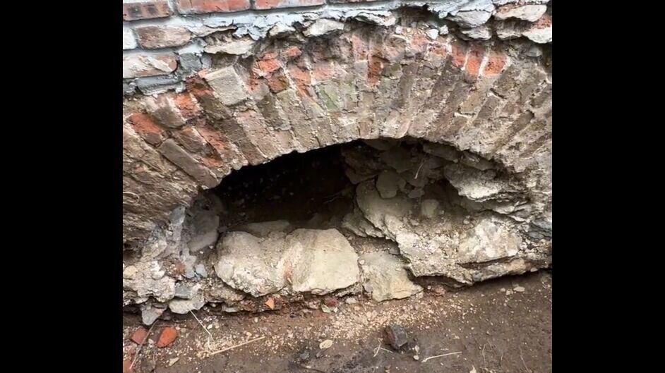 Отсутствующий в архивных чертежах потаенный ход был заложен кирпичами.