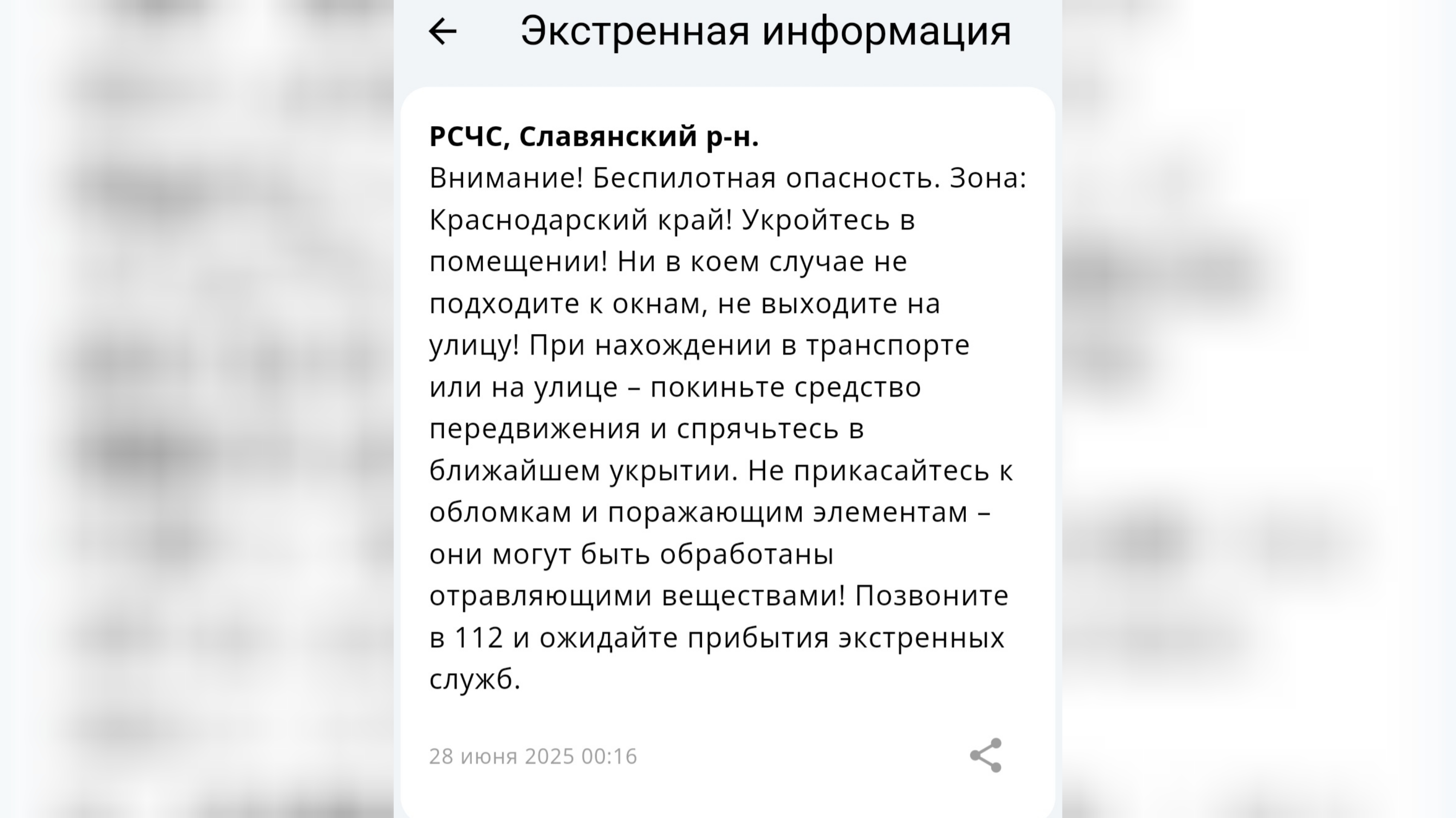 Жители региона получили сообщения с рекомендациями действий.