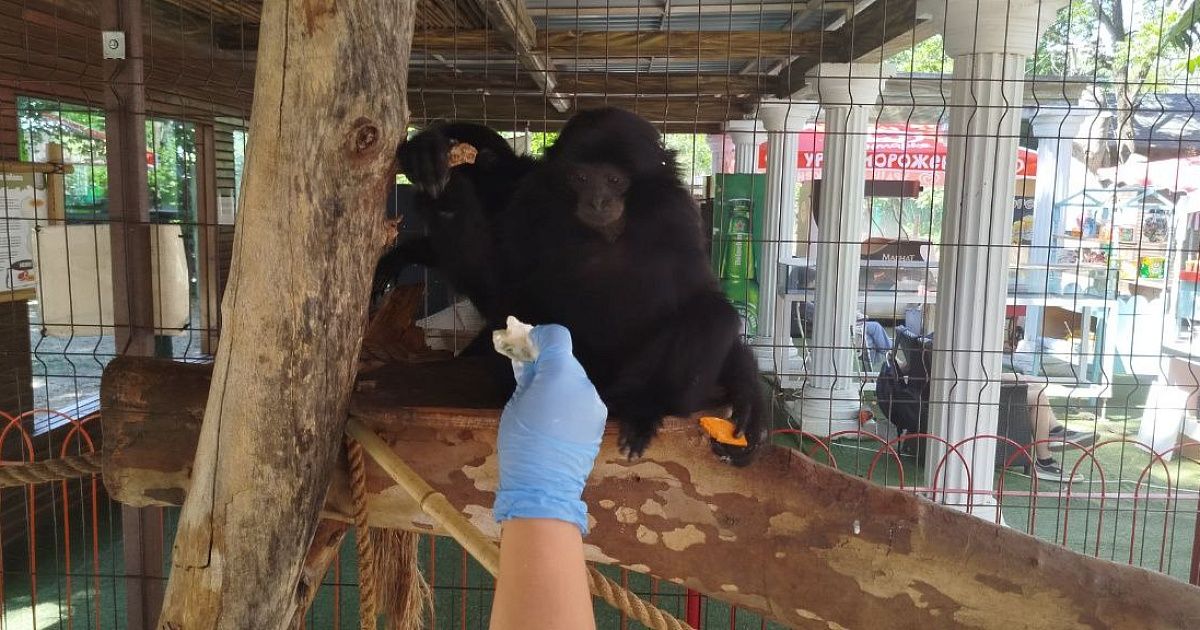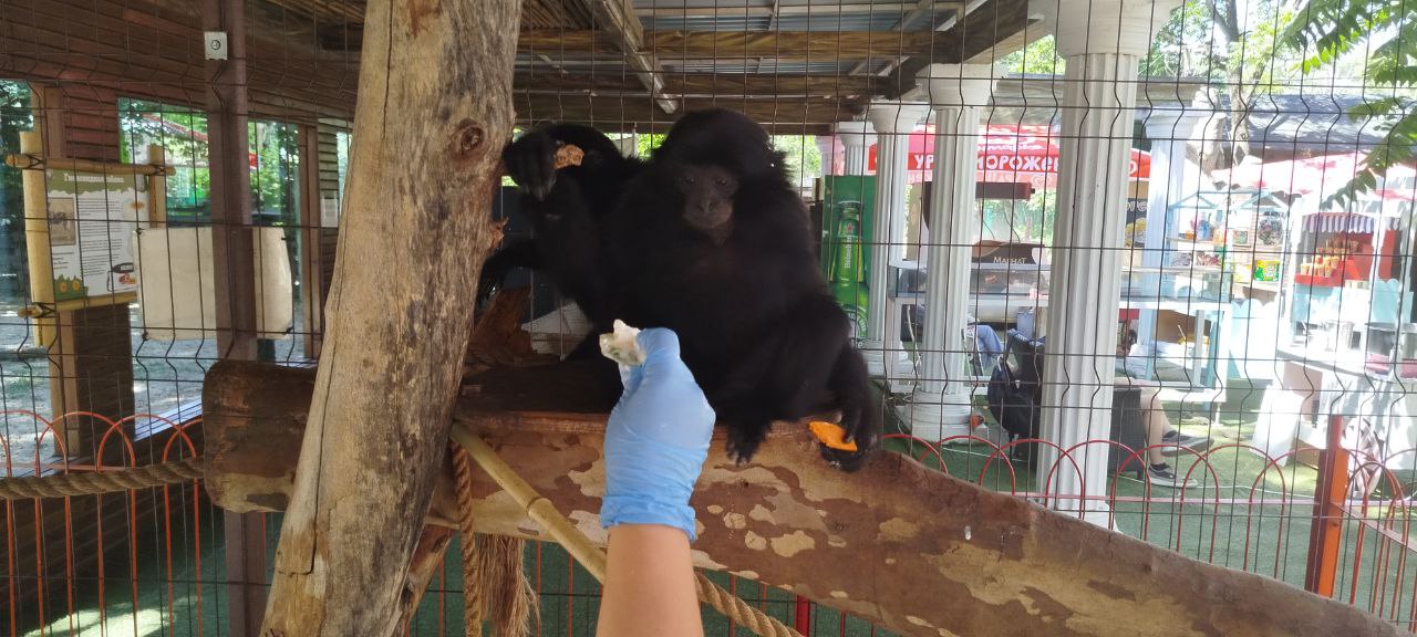Девушка просунула электронную сигарету в вольер обезьяне.