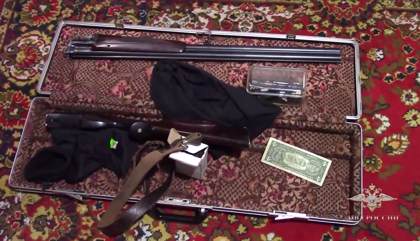 При обысках по местам проживания задержанных обнаружен крупный арсенал: около 4500 боеприпасов различного калибра в 183 коробках, 240 банок бездымного пороха общим весом 120 кг, 26 единиц огнестрельного оружия, основные части пистолетов, штык-нож.