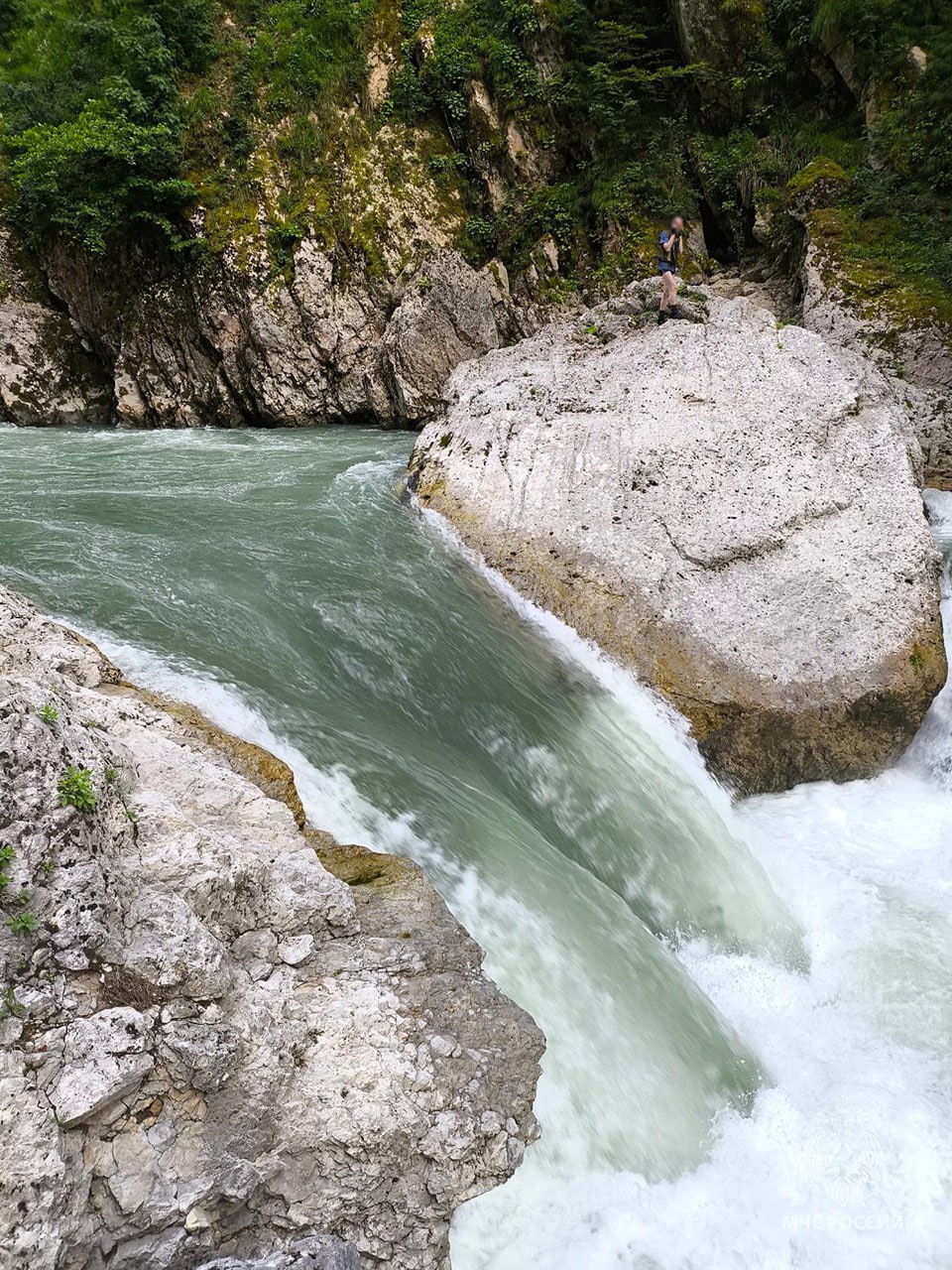 Краснополянское подразделение ЮРПСО оперативно прибыло к месту происшествия. С помощью альпинистского снаряжения спасатели обеспечили безопасный переход мужчины на берег, после чего доставили его в город на автомобиле МЧС.