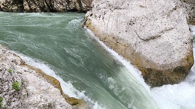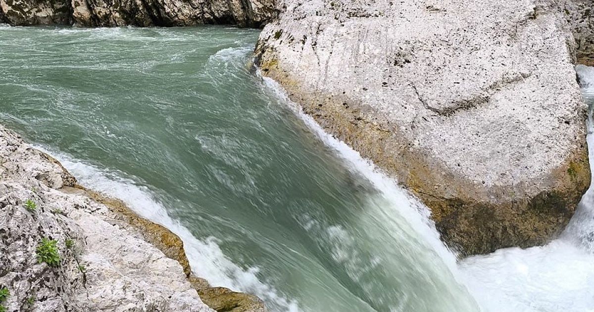 Когда турист приблизился к порогу Ахцу – одному из самых сложных и опасных участков реки Мзымты с шестой категорией сложности, – его лодка начала уходить в сторону большого камня в русле.