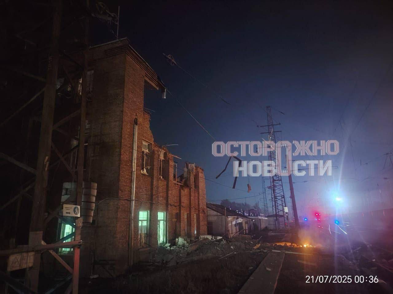 Очевидцы сняли на видео 4 очага пожара и разбросанные вследствие атаки обломки зданий.