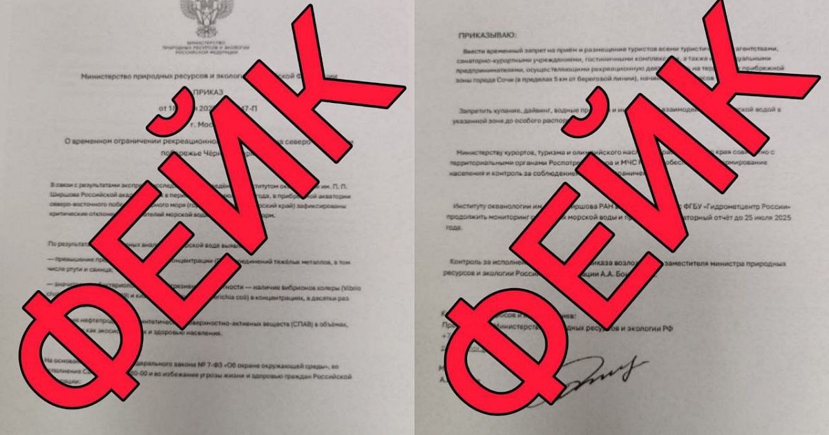 Информация о якобы изданном министром Козловым распоряжении о закрытии сочинских пляжей оказалась ложной. Оперативный штаб Кубани отреагировал на появившиеся сообщения о небезопасности пляжей Сочи для здоровья отдыхающих. Документ о закрытии пляжных территорий из-за загрязнения воды, подписанный министром природных ресурсов и экологии РФ Александром Козловым якобы власти региона назвали подделкой.