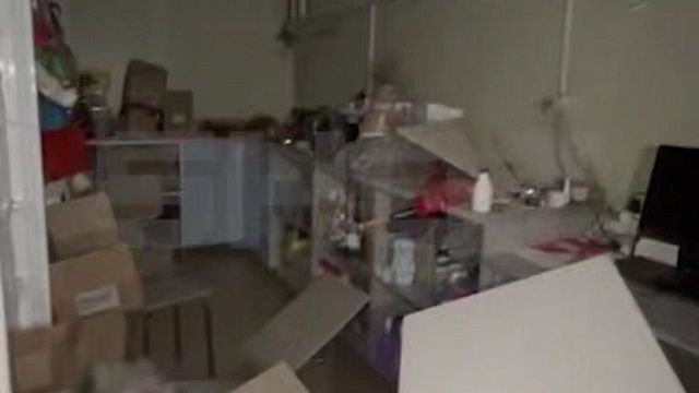 На кадрах видно хаотично лежащие на полу поврежденные товары и рухнувший на пол потолок.