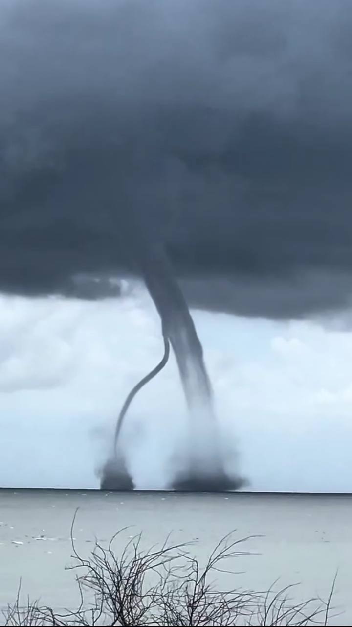 Отмечается, что «танец» смерчей медленно приближается к берегу.