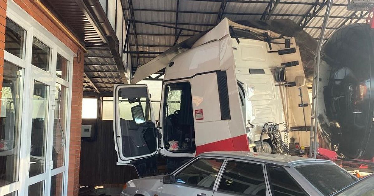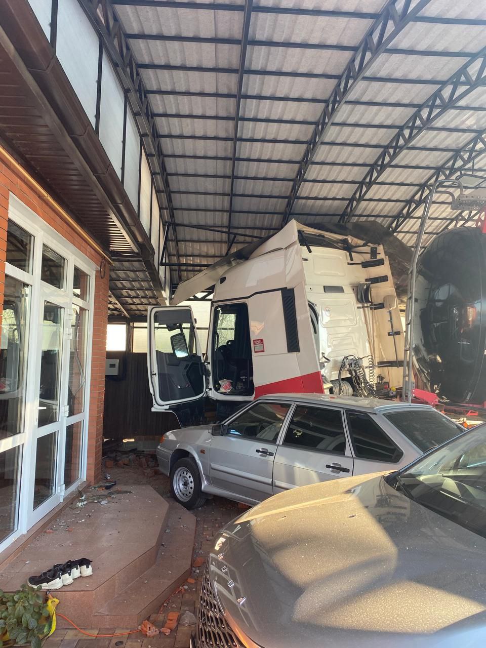 В Абинске автоцистерна Renault въехала прямо во двор частного дома на улице Дорожной. По предварительным данным, водитель потерял управление, и большегруз выехал за пределы проезжей части.