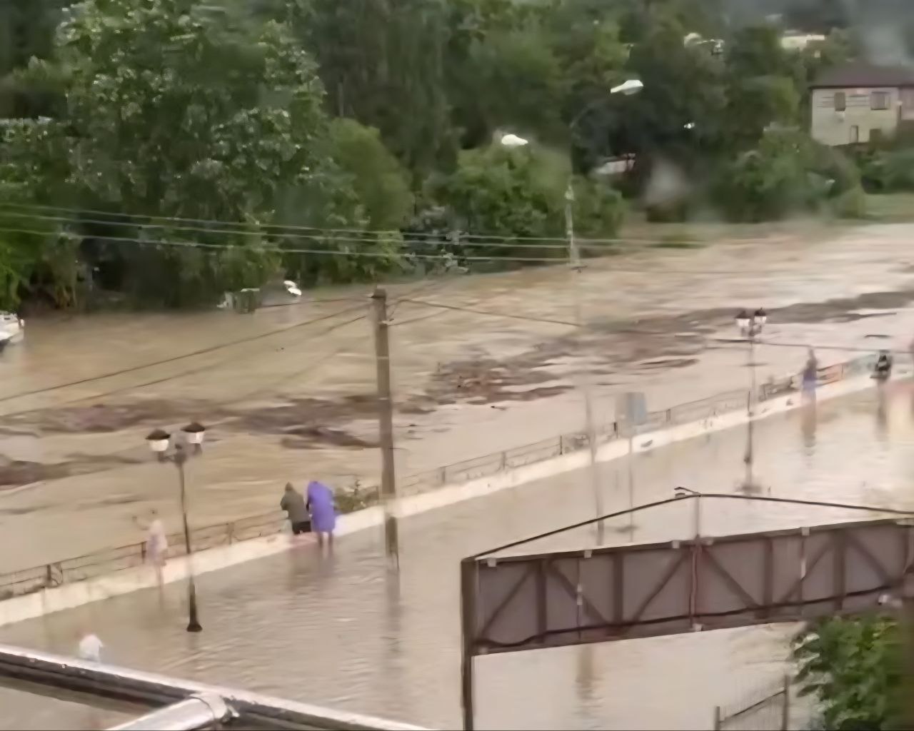 Разбушевавшаяся стихия также нанесла урон автомобильному мосту, повредив металлические ограждения, которые были сломаны и смыты водой.