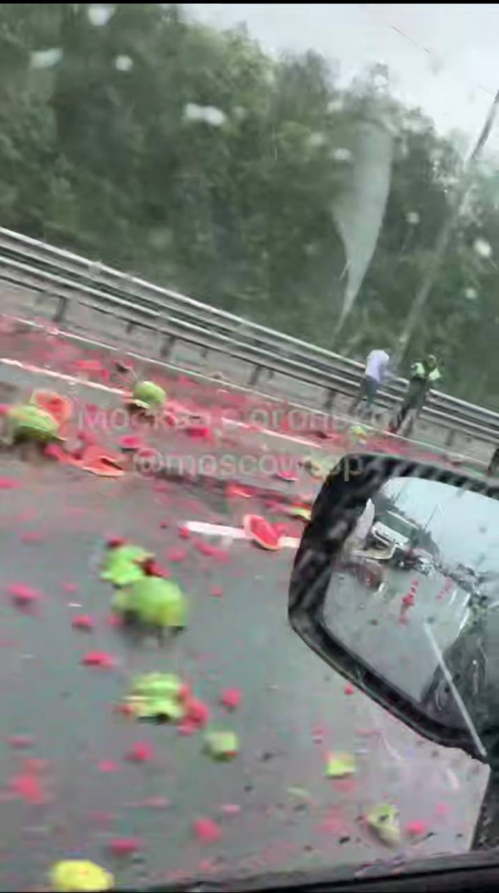 В Подмосковье, в районе Серпухова, перевернулся грузовик с арбузами, в результате чего произошло ДТП, передает Телеграм-канал «Осторожно, Москва».