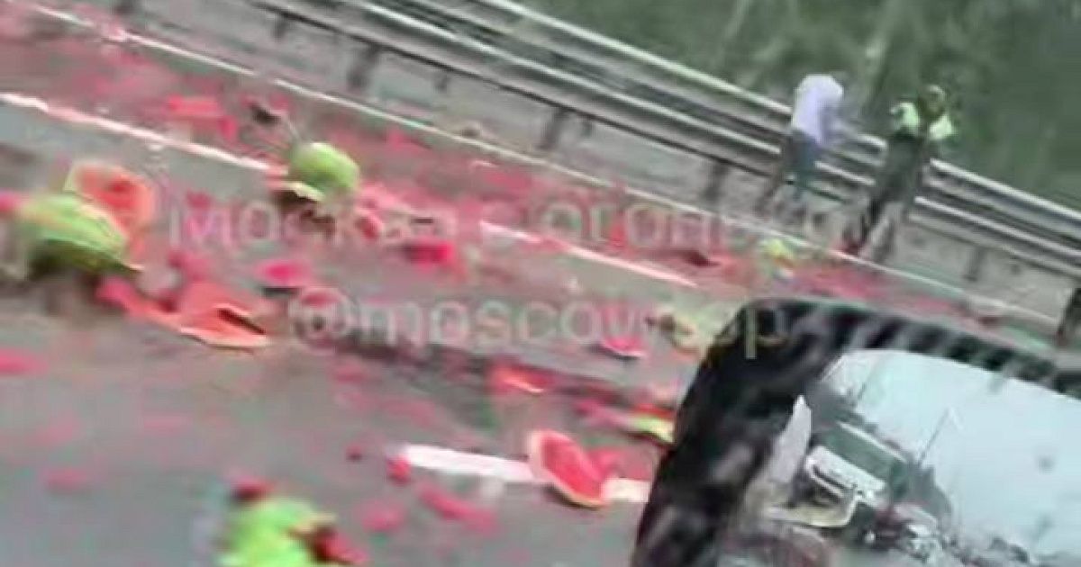 Разлетевшиеся по трассе арбузы спровоцировали ДТП.