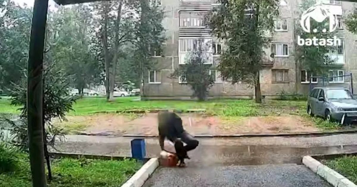 В Уфе подъездные камеры сняли на видео взрыв кеги пива, на которую упал несший ее мужчина, кадры этого инцидента публикует Телеграм-канал «Mash Batash».