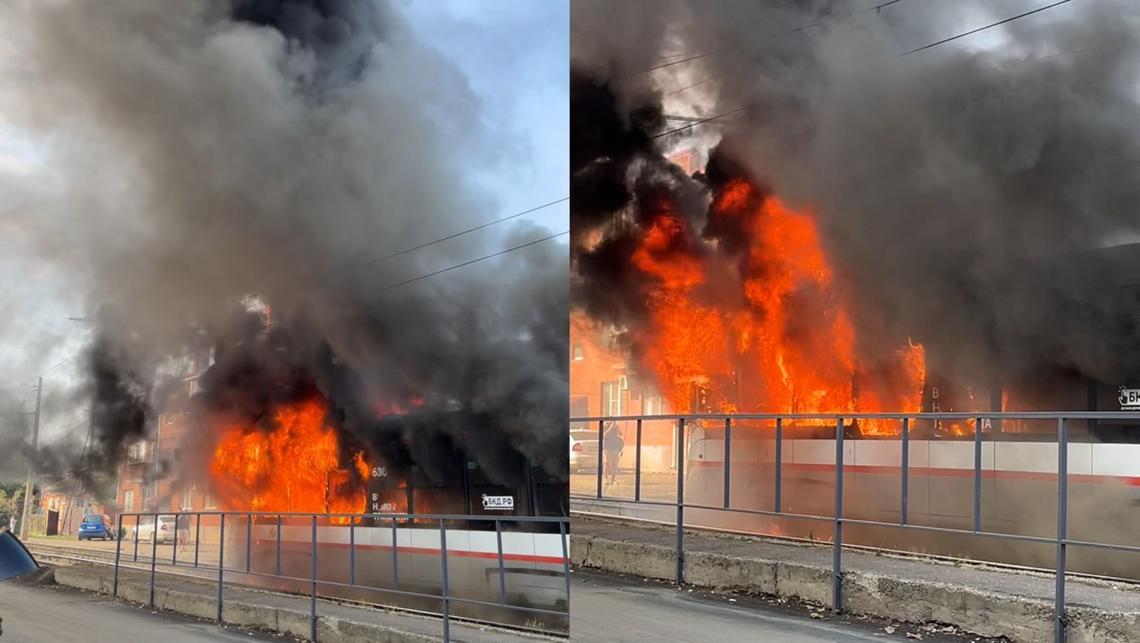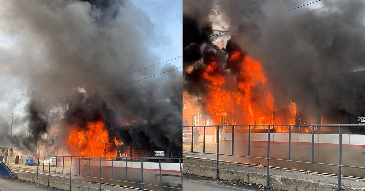 В Краснодаре на конечной остановке на улице Декабристов загорелся трамвай. По информации очевидцев, огонь сначала появился на крыше кабины, а затем распространился на салон. Попытки локализовать возгорание с помощью огнетушителей не дали результата.