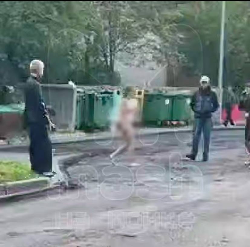 В Санкт-Петербурге женщина голой пробежалась по улице и напугала компанию старшеклассников, кадры этого инцидента публикует Телеграм-канал «Mash на Мойке».