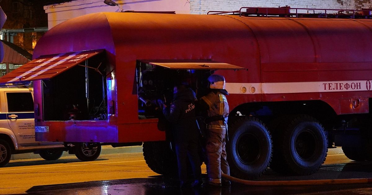 На кадрах видно, что выбиты окна, сорваны дверные проёмы вместе с дверями, а внутренняя мебель и предметы интерьера оказались разрушены или повреждены. Пожарные продолжают работать на месте, предотвращая дальнейшее распространение огня.