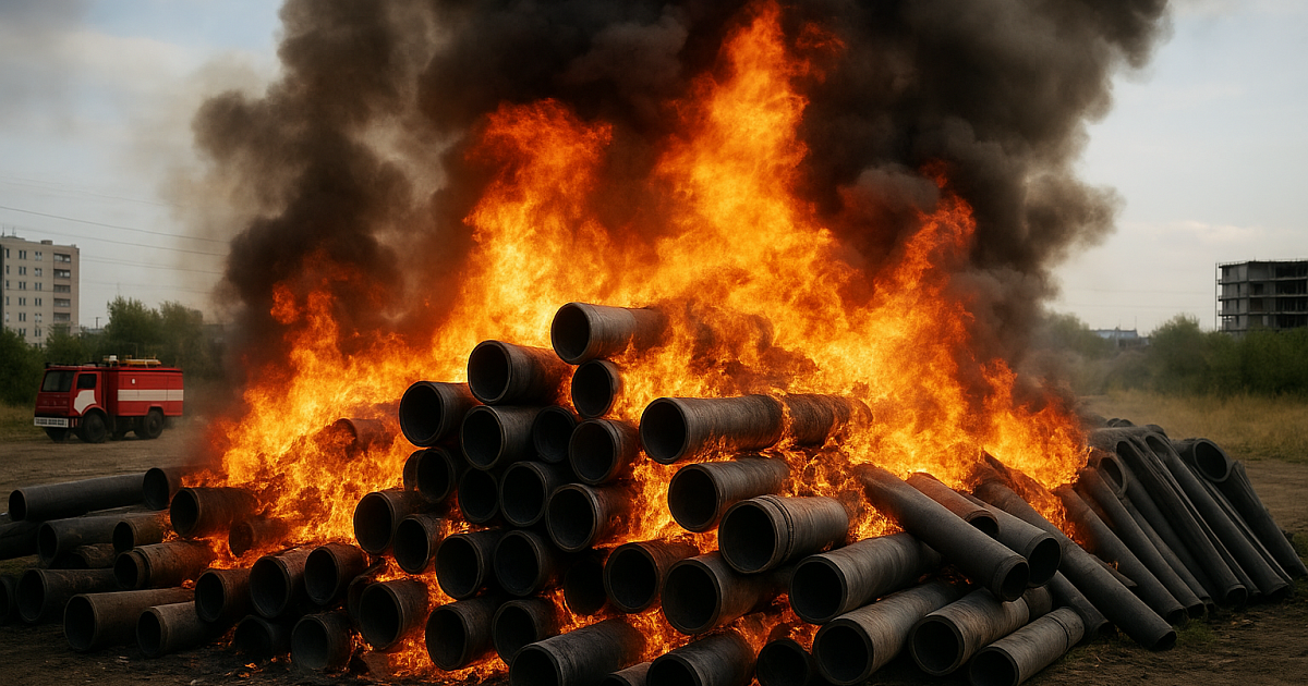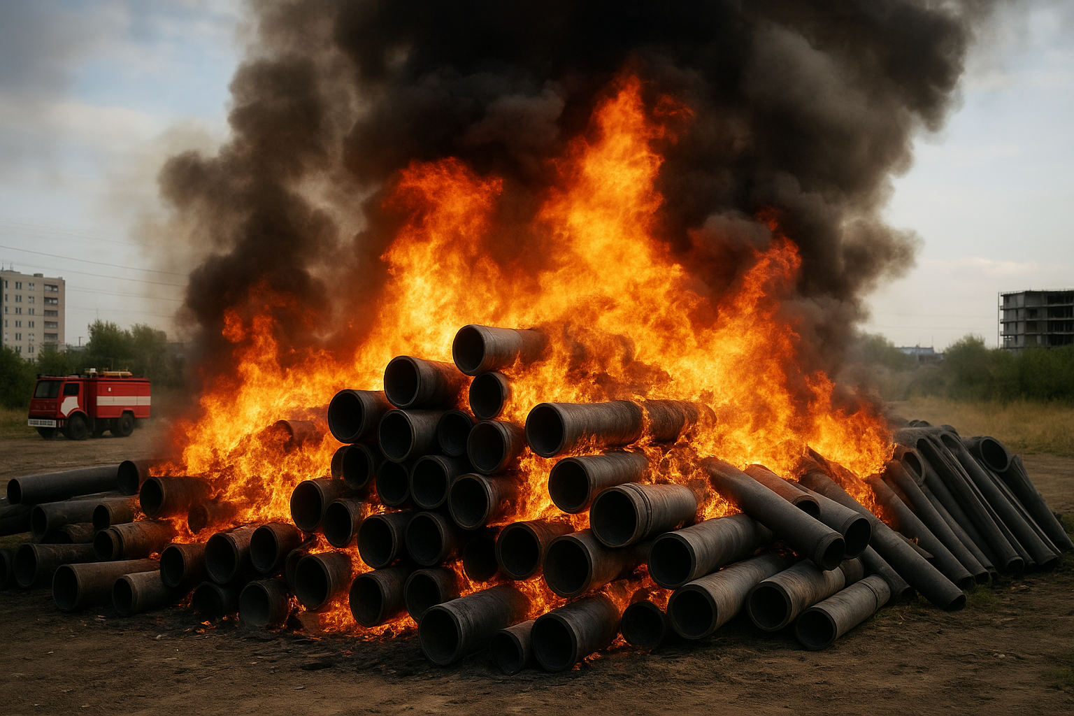 31 августа в Заозерном районе Кургана, на площади около 1000 квадратных метров загорелись пластиковые трубы, предназначенные для строительства канализации. Возгорание произошло недалеко от школы №52 и строящегося жилого комплекса. Очевидцы заметили на месте происшествия несколько подростков, предположительно причастных к поджогу.