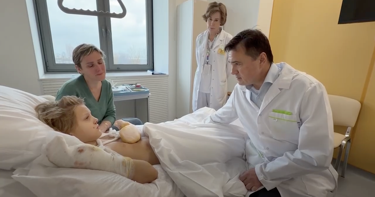 Андрей Воробьев пообщался с мальчиком, которому врачи ампутировали часть пальцев после шестичасовой операции.