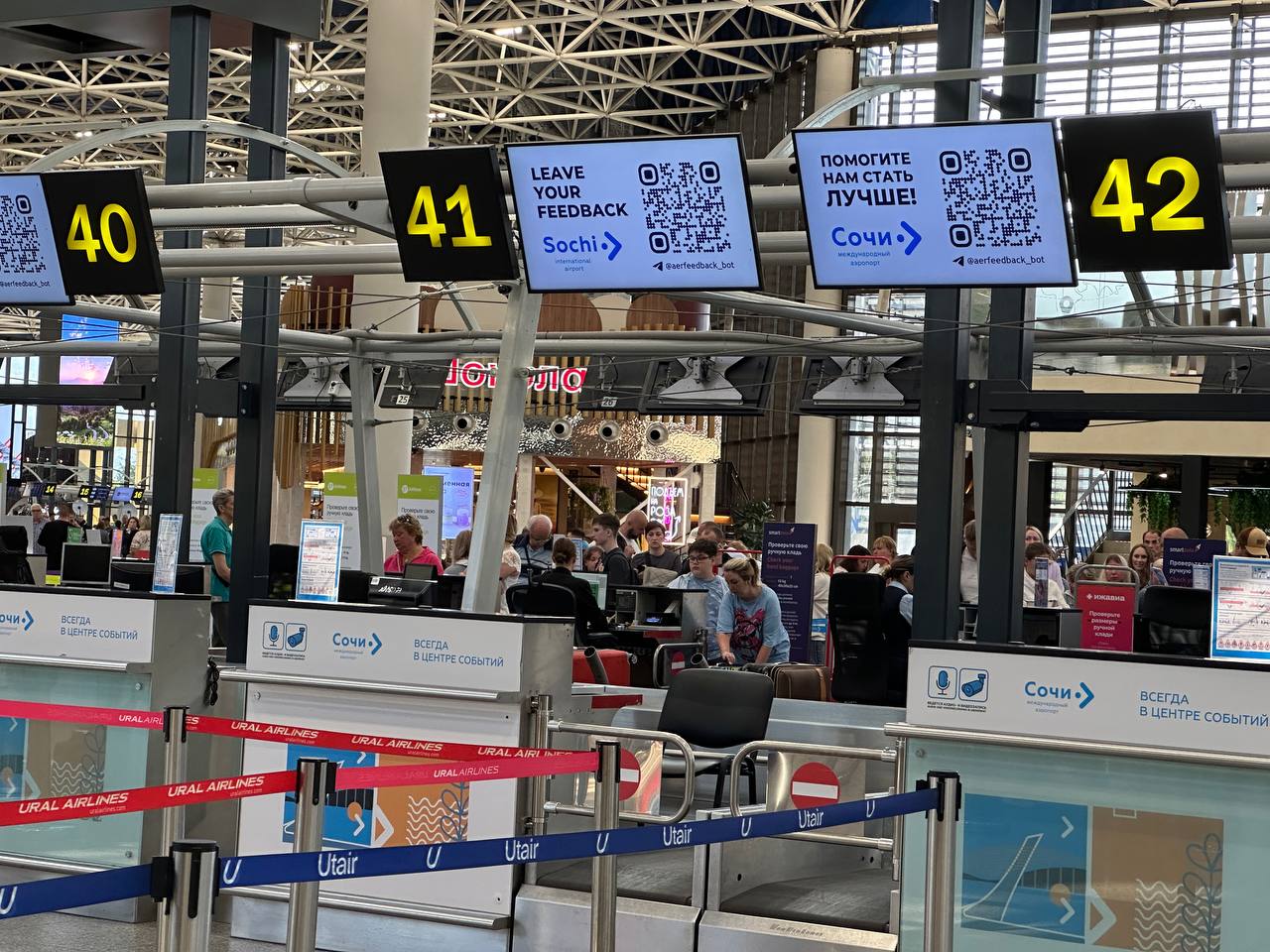 Пять семей из Сургута, прибывшие в аэропорт Сочи за три часа до вылета рейса Utair, не успели пройти регистрацию и провести посадку. Об этом сообщает Ural Mash со ссылкой на пассажиров. По их словам, сотрудница стойки регистрации слишком медленно вносила данные, из-за чего группы с детьми остались в терминале и понесли значительные расходы на перебронирование.