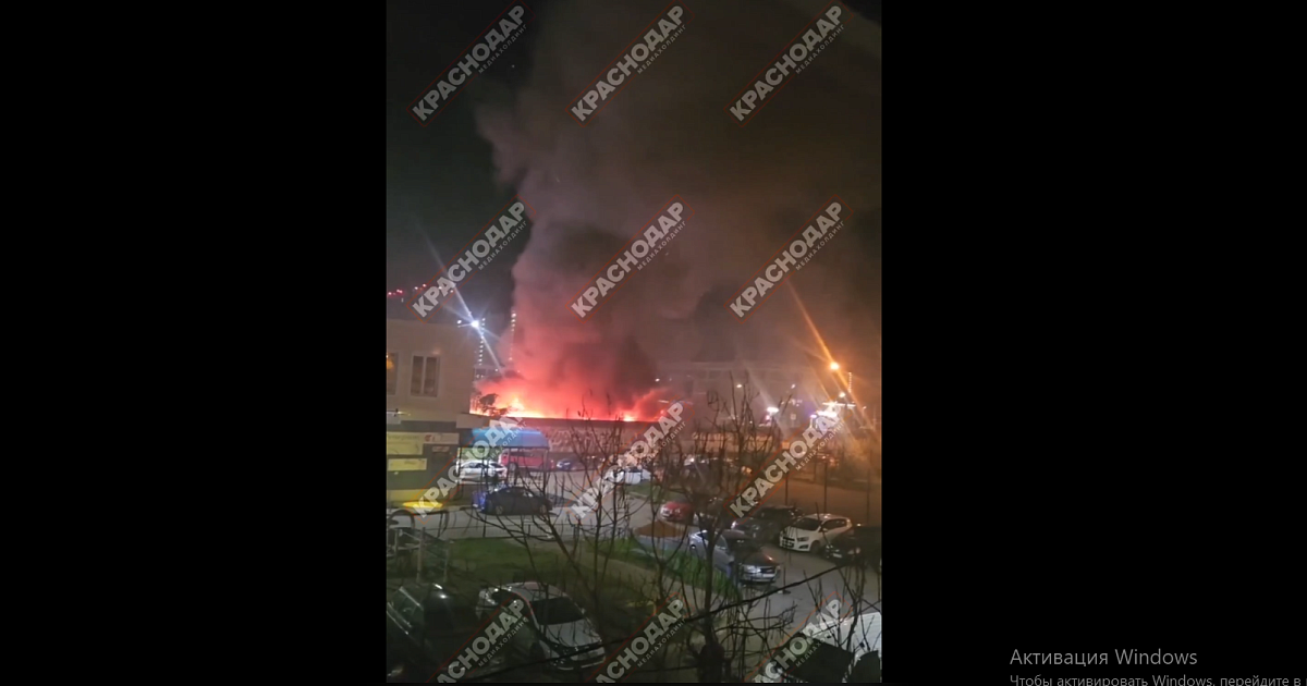 Очевидцы сообщили о высоком столбе дыма, видном издалека. Кадры с места пожара опубликовал телеканал «Краснодар».